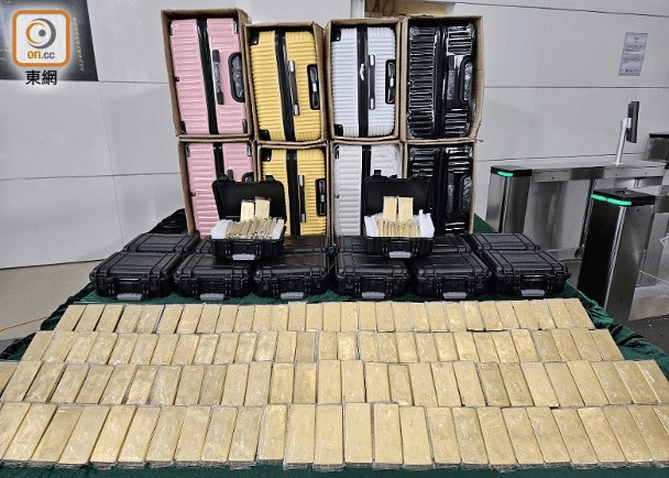 香港海關本周二(25日)偵破有史以來最大宗走私黃金案,起出145公斤、市值1.1億港元金條。當日凌晨時分,機場科人員根據風險評估及情報分析,檢查一件付運往日本的塑膠行李箱貨物。該批貨物共有26件、重約476公斤,關員以X光掃描,揭發14件影像有可疑,遂揀選該14件貨物進行檢查,經磅重發現每件重量達23公斤,與報稱的10.4公斤明顯超重甚多。