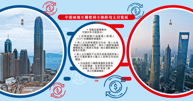 小額跨境滙款額度方面,消息指出,港人北向跨境滙款,每人在每家參與機構如銀行的轉數快賬戶,每年小額跨境滙款總額度為20萬港元等值,每日滙款的額度為一萬港元等值。同時不佔用目前香港居民每人每日可滙款最多8萬元人民幣往內地的額度。