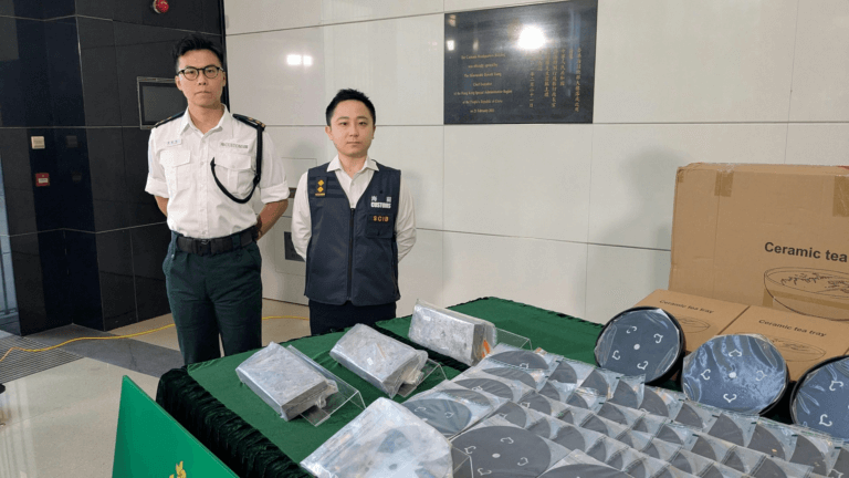 The first case, uncovered on October 3, involved ceramic trays bound for Japan. Customs officers found 60 kilograms of gold-silver alloy hidden in 126 trays, valued at HK$20 million. Each tray contained a heavy black circular plate showing machining marks. Tests later confirmed the metal to be an alloy of 30 percent gold and 70 percent silver.
